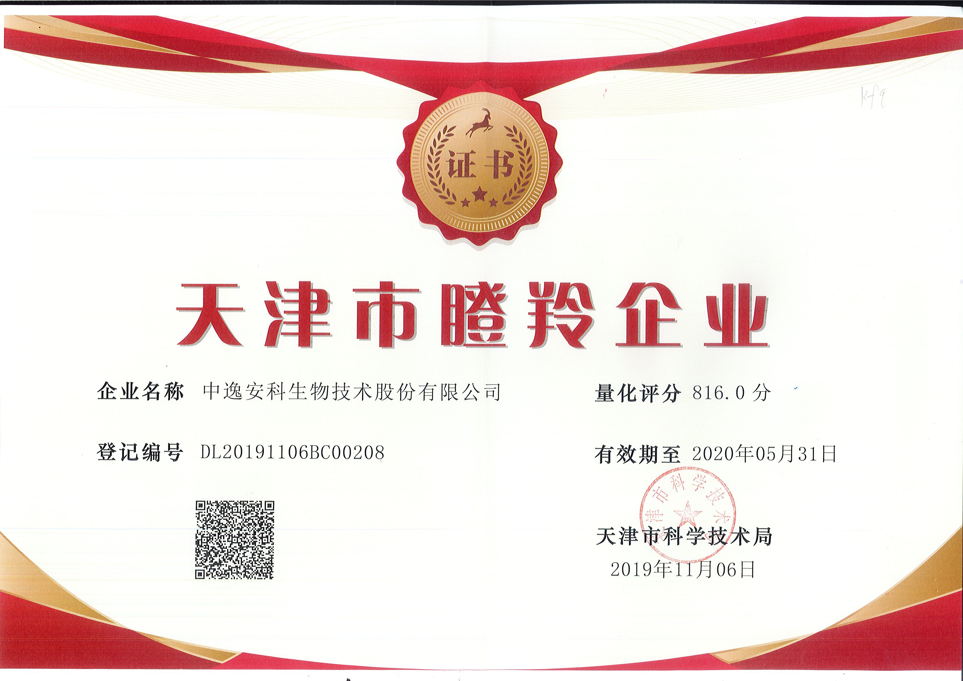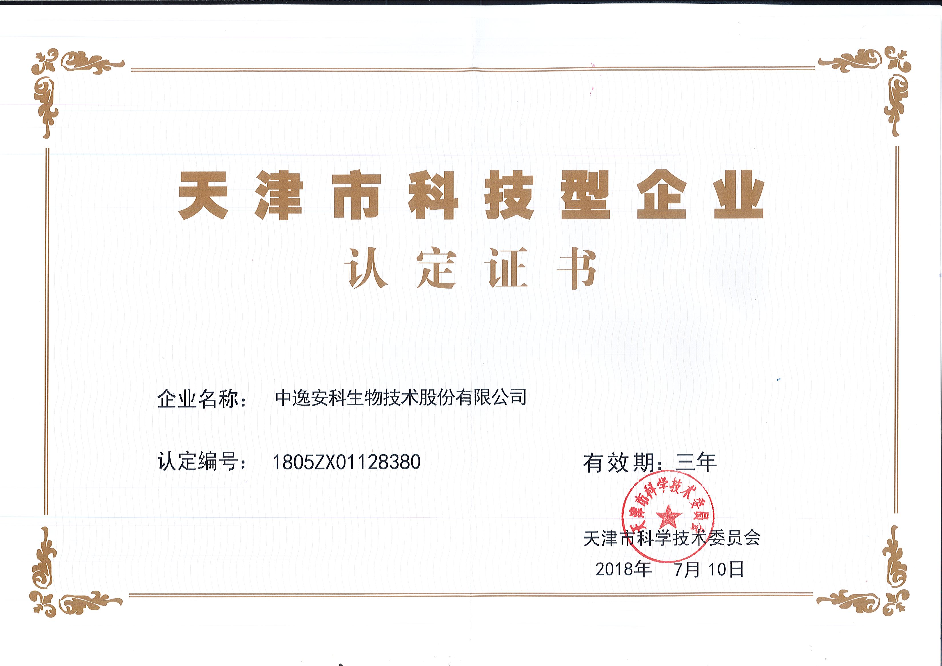 Title awarded:Tianjin Enterprise Key Laboratory of New Technology Research on Subunit Vaccine-NO.18 in attachment-ZhongyiAnke