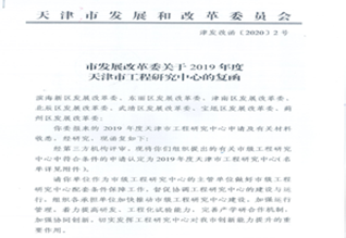 Reply of Tianjin Development and Reform Commission on Tianjin Engineering Research Center of 2019