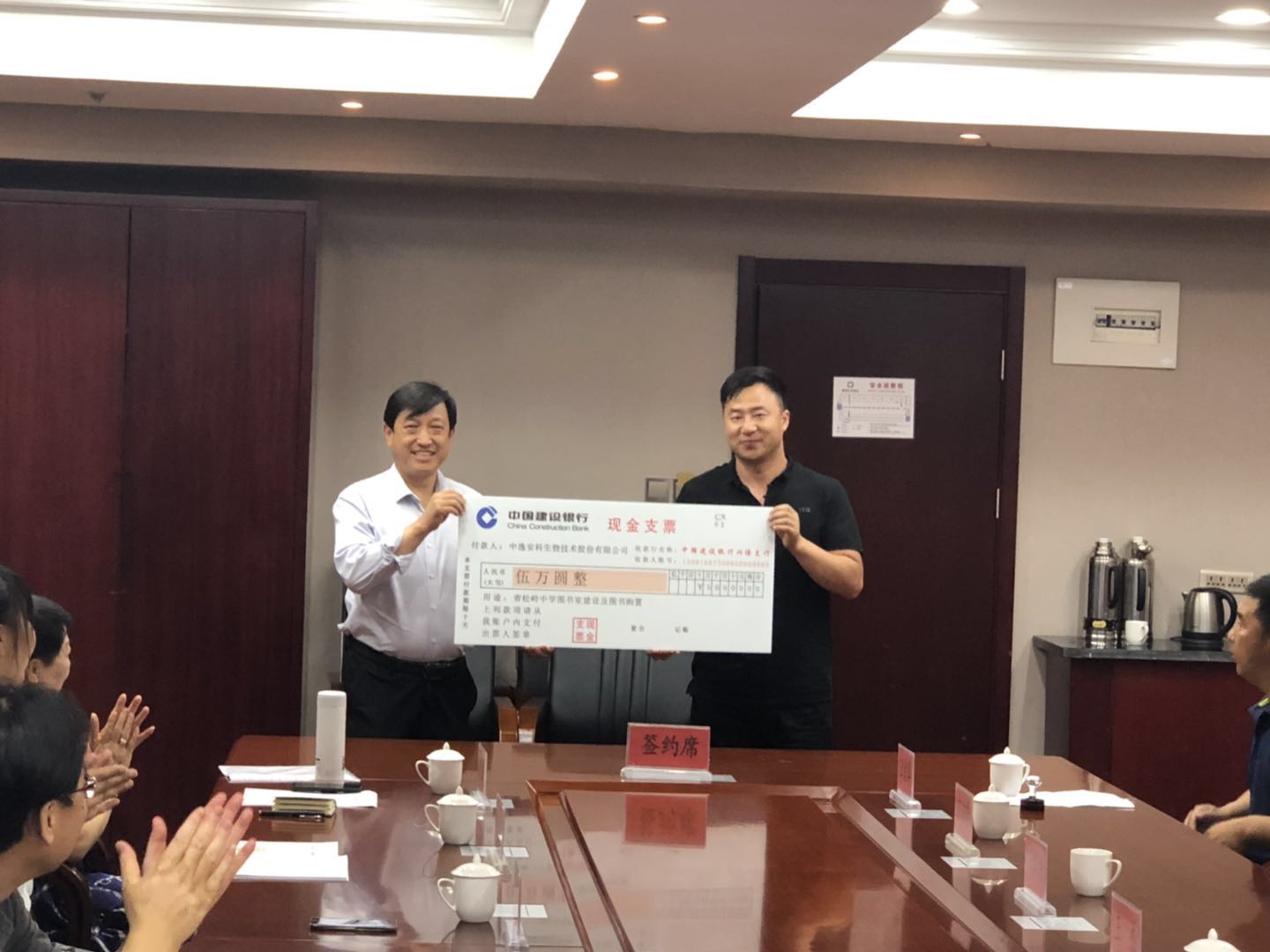 ZhongyiAnke Biotech Co., Ltd. donated CNY 50000 for the construction of the recording and broadcasting classroom of the Fourth Primary School and the library of Qingsongling Middle School in Xinglong County, promoted the exchange and cooperation in education between Beichen District and Xinglong County, motivated the common development in education of the two regions, and deepened mutual friendship.
