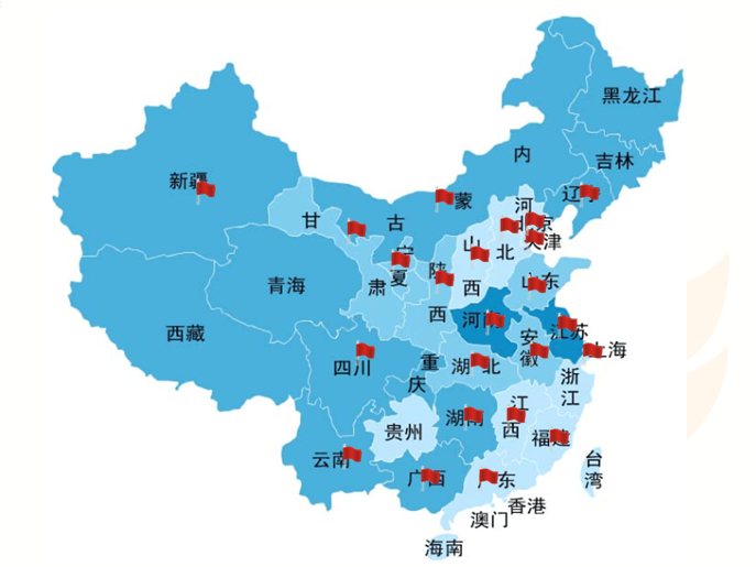 Wide sales coverage: distributed in 23 provinces and cities such as Beijing, Tianjin, Liaoning, Hebei, Shanxi, Shandong, Inner Mongolia, Ningxia, Shaanxi, Henan, Anhui, Jiangsu, Shanghai, Jiangxi, Hunan, Hubei, Gansu, Xinjiang, Yunnan, Sichuan, Guangxi, Guangdong and Fujian.